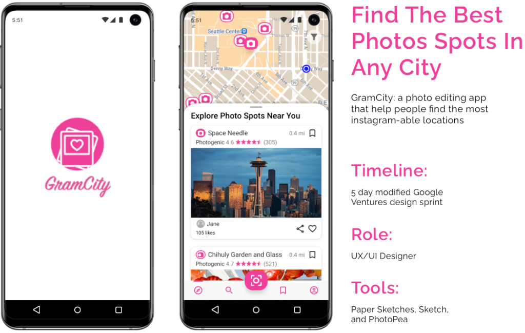 GramCity is a photo editing mobile app that is designed to help users find great photo opportunity spots in any city. I followed a modified GV design sprint to quickly create and test out a possible solution in five days.