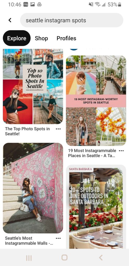 Pinterest is another image-driven platform for sharing ideas. The layout of Pinterest is very simplistic to allow users to focus on the images. When searching for ideas, the results are returned in a layout that is uneven to accommodate different sizing. However, the uneven layout also makes the images look like a collage creating visual interest.