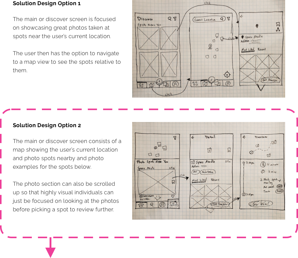 Given that the design sprint is only five days, I decided to focus the solution design around how and where users can find photo spot locations.