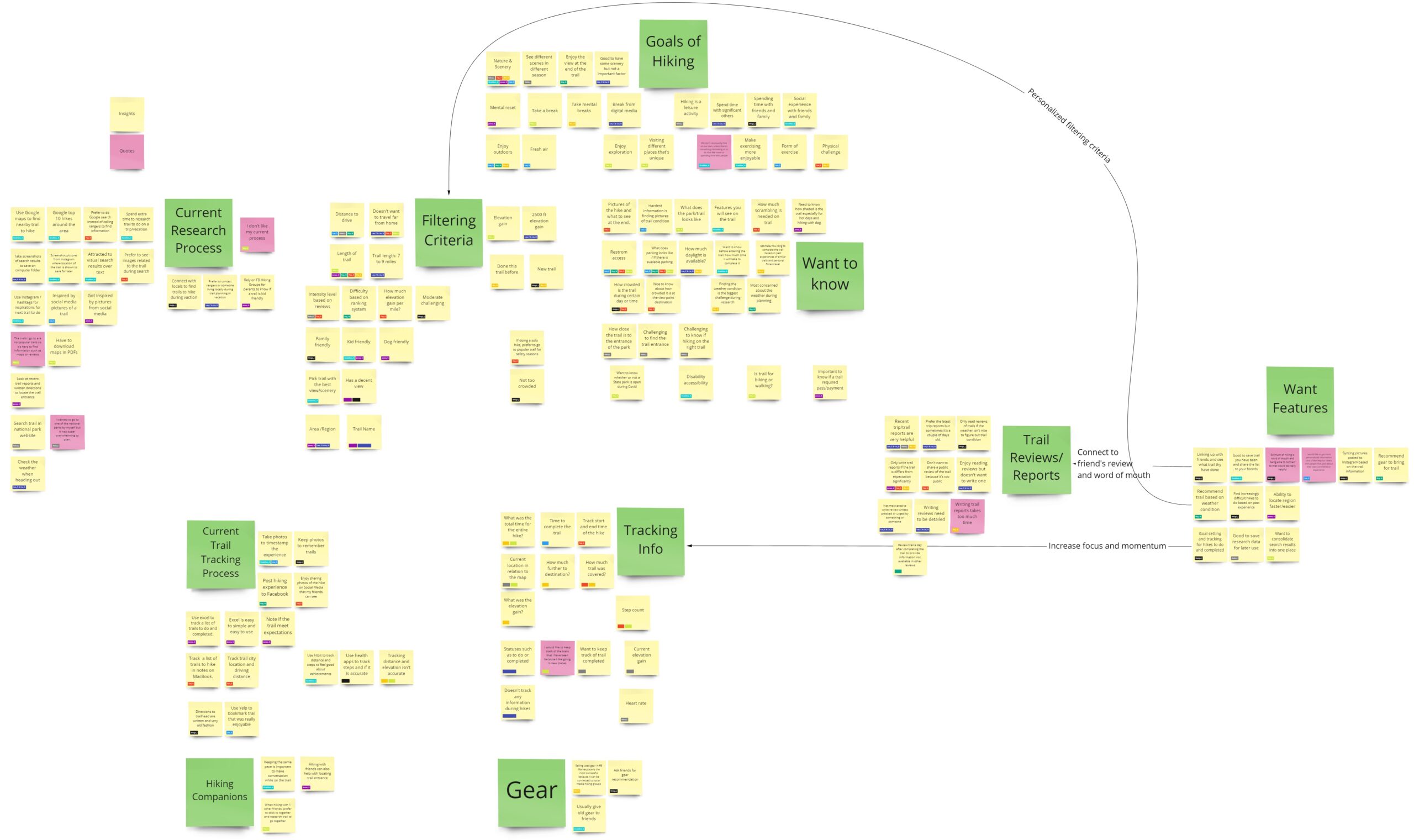I organized the findings from the user research in an affinity diagram.