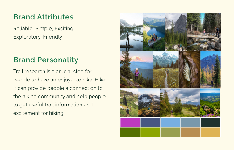 For the color, I created two palettes as I am uncertain which one to use. Based on my research, the dark text is more legible against a lighter background. However, I know the trail results will contain a lot of photos and images that will look better on a darker background.
