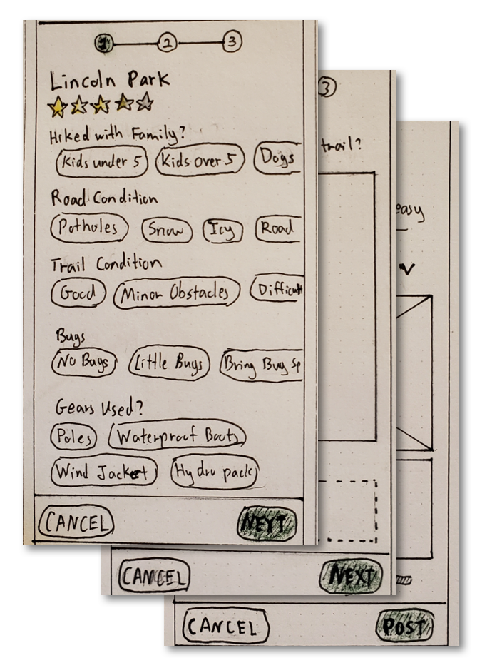 Based on these user flows, I sketched out all the screens and created a paper prototype. Then I recruited 6 participants for usability testing.