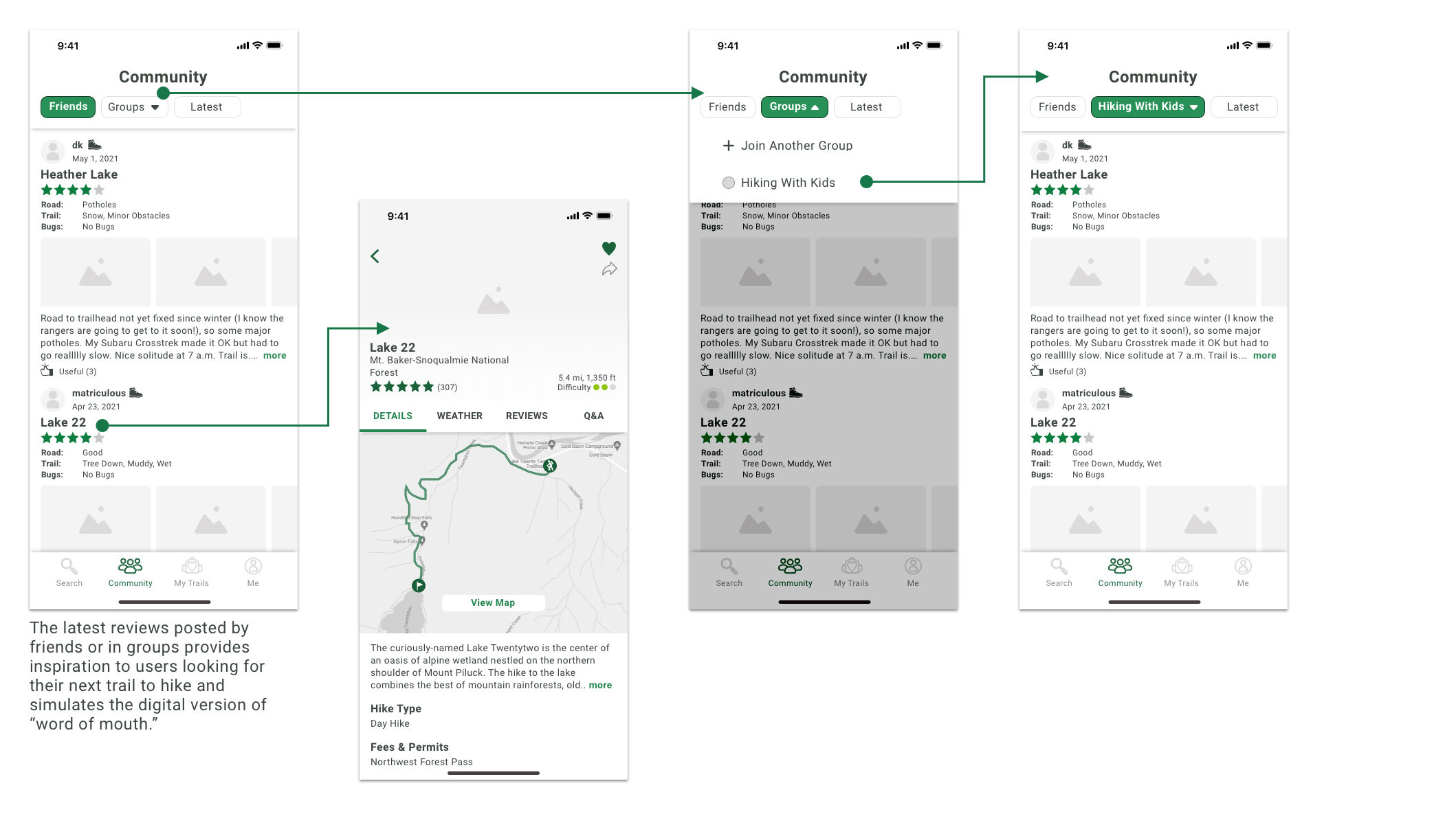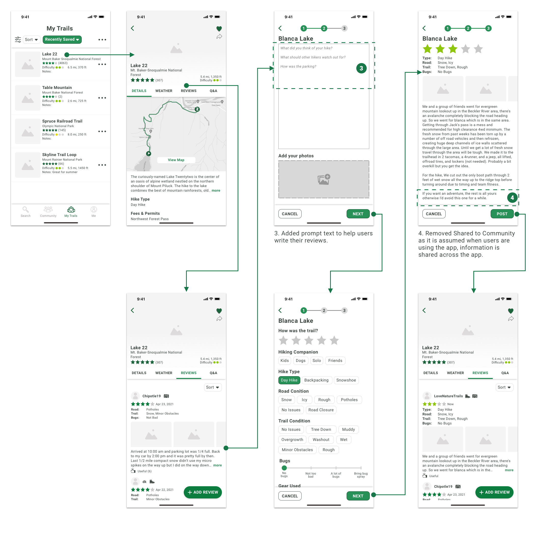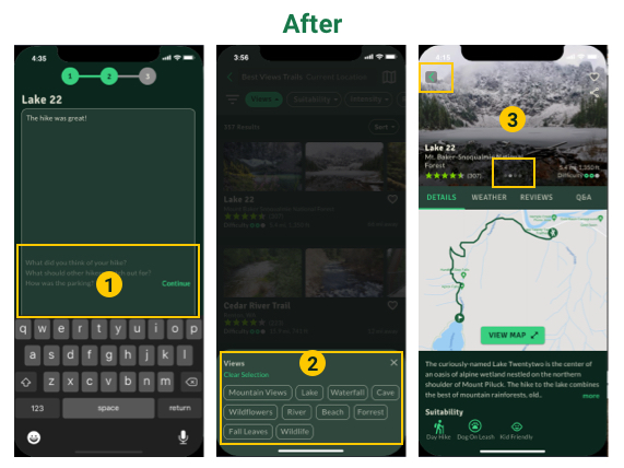 - During the last step of the trail review process, all participants were confused about what the Share to Community switch represented as they all assumed that their review should be available across the platform if they are using the application.
