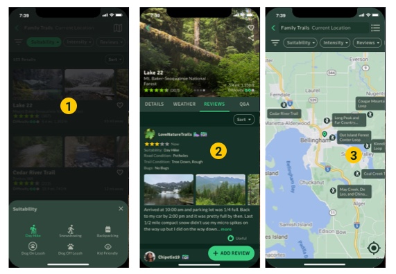 - Look for inspiration for trails to hike based on your friends or other hikers.