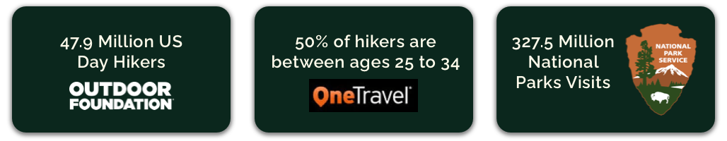 Hiking is one of the top 5 outdoor activities and increased in popularity in recent years.